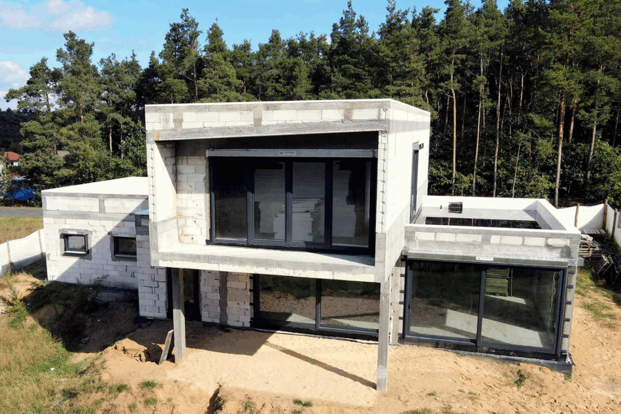 Wznosimy konstrukcje domów w stanie surowym – zarówno otwartym (bez stolarki), jak i zamkniętym (z oknami i drzwiami). Dbamy o solidne wykonanie każdego etapu.